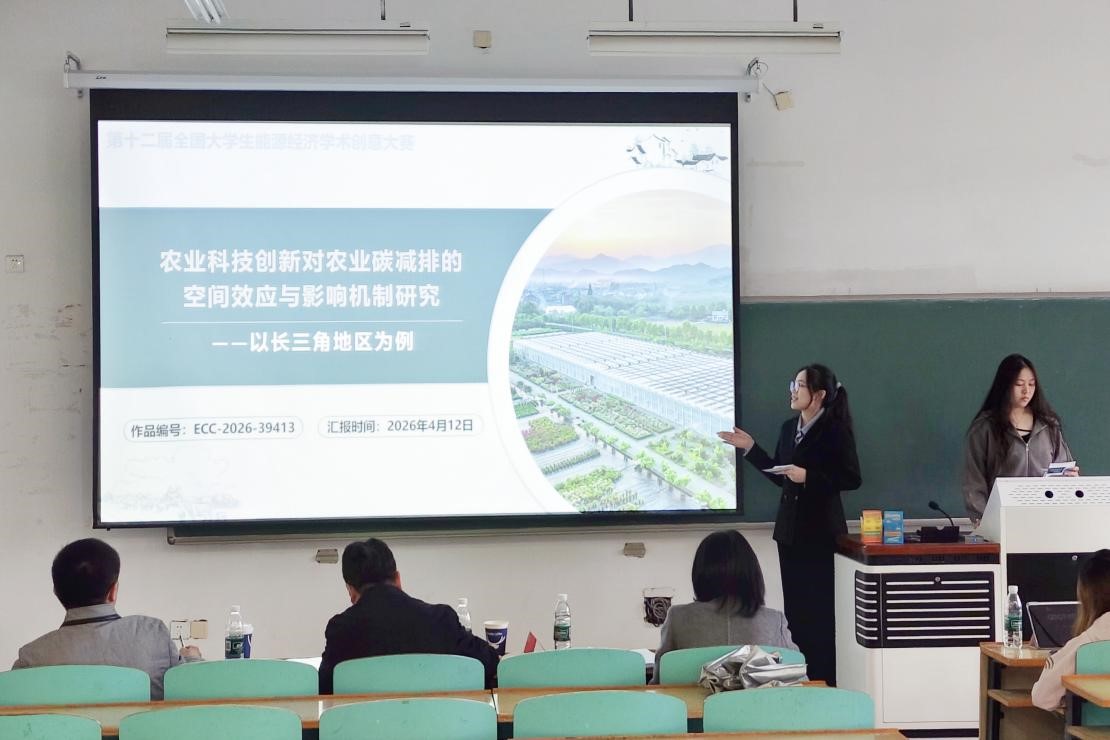 本次参赛团队由刘德佳、黄臻灵、黄逸雯、纪梦、徐晟安五位同学组成,由张晓芳老师全程指导。团队参赛作品为《农业科技创新对农业碳减排的空间效应与影响机制研究——以长三角地区为例》。研究紧扣国家双碳战略与长三角一体化发展战略部署,聚焦农业绿色低碳转型关键议题,立足现实发展需求展开深度探究,选题立意深刻、研究贴合时代发展大势。