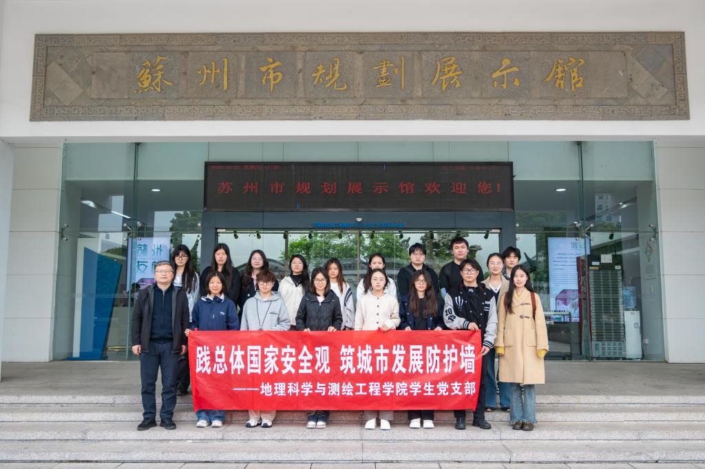 党委副书记彭科、辅导员、学生党员、入党积极分子代表参与活动。在讲解员引导下,全体成员参观了苏州市规划展示馆核心展区。通过多种展示形式,直观了解苏州在国土空间规划、资源利用等方面的成果,深刻认识到地理测绘专业技术在国土安全、能源管控中的重要作用,明晰国土空间、资源能源安全与总体国家安全观的紧密联系。