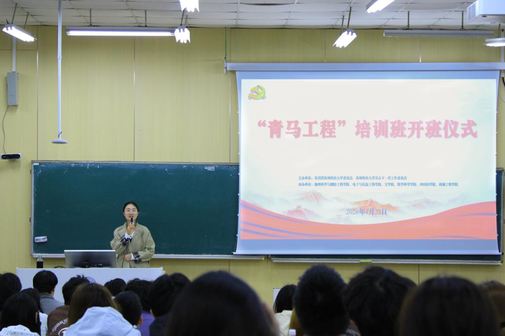 2026年青马工程培训班开班仪式顺利举行。仪式邀请校关工委郑海老师出席,并以《在青春的赛道上努力奔跑——奋进新征程,建功立业新时代》为题,为全体学员讲授开班第一课,辅导员代表苏玲及全体青马学员参加活动。